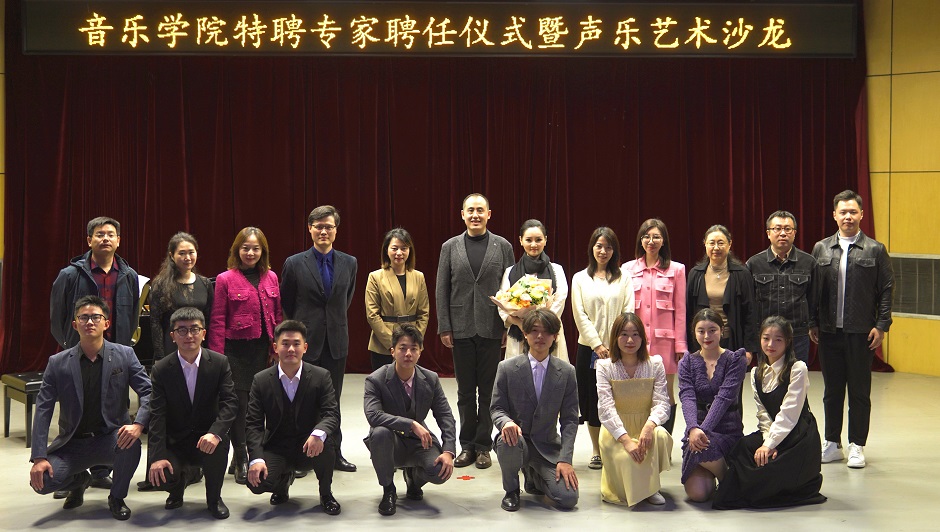 11月9日下午,音乐学院举办特聘专家聘任仪式暨声乐艺术沙龙活动,聘请著名女高音歌唱家周磊女士为音乐学院特聘专家,并在演奏厅举办“声乐艺术沙龙”活动。音乐学院声乐教研室、部分教师及学生代表参加活动,院长王春燕出席活动并向周磊颁发聘书,活动由副院长周乐主持。