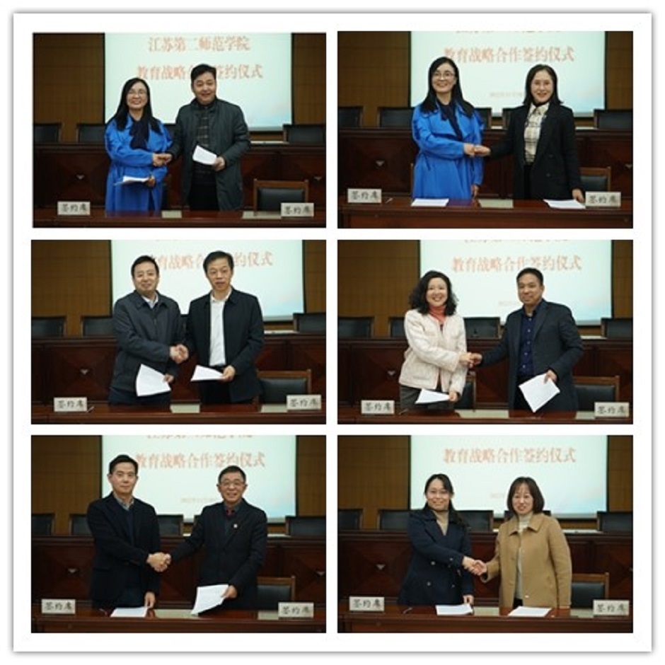 省师干训中心常务副主任季春梅、南京江北新区实验初中校长陆海军分别在仪式上发言。有关县市教师发展中心和基础教育学校负责人分别与省师干训中心、二级学院负责人签署战略合作协议。