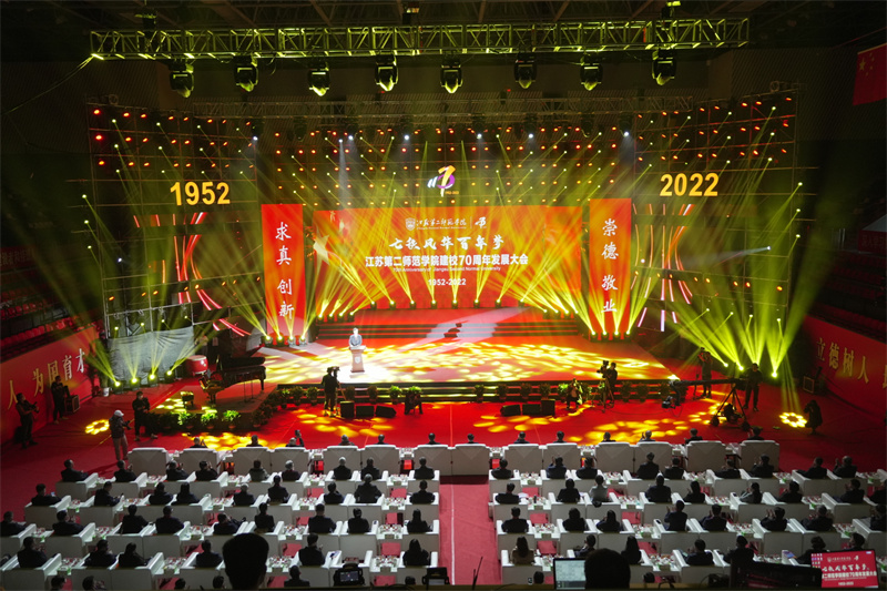 据了解,此次发展大会分“向阳花开”“行路铿锵”“旗帜高扬”“凤鸣朝阳”四个篇章展开。其间,师生进行了精彩的文艺汇演。校庆期间,江苏第二师范学院通过线上线下结合等形式,同步举办了“协同·创新·发展:新时代教师发展与支持体系建设——第二届江苏教师发展论坛”、教育部中华优秀传统文化传承基地揭牌仪式、“盛世风华向未来”舞台思政课、七十周年校史展、陶行知先生雕像揭幕仪式等系列活动。