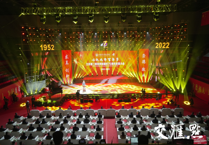交汇点讯 11月19日,江苏第二师范学院在石湫校区体育馆举行建校70周年发展大会。校园里,群贤毕至,少长咸集,数万人通过网络直播收听收看了建校70周年发展大会盛况,共祝江苏二师七十华诞。