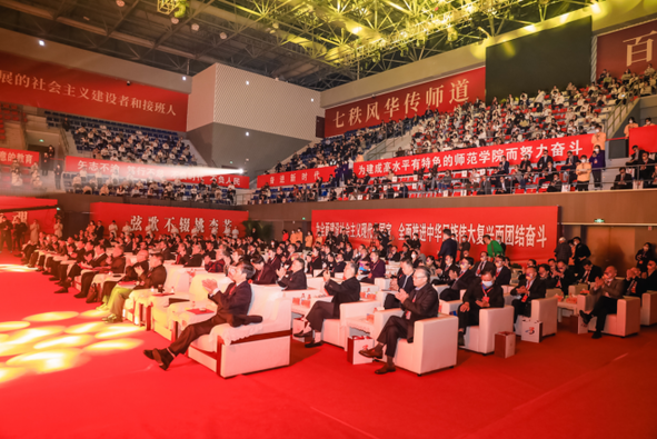 党委书记王仁雷表示,抚今追昔、鉴往知来,站在学校发展新的历史起点,我们信心如磐,使命在肩:要矢志不渝,践行教育报国的壮丽理想。把加强党的全面领导、贯彻党的教育方针,作为学校事业发展之魂,着力培育更多堪当民族复兴重任的时代新人,以奋发有为的精神奏响“教育报国”的时代强音。要笃行不怠,赓续师道传承的不变初心。把聚焦教师教育主业、落实立德树人使命,作为学校事业发展之根,传道受业、铸魂育人,以锲而不舍的恒心交出“师道传承”的历史答卷。要自信自强,坚守勇毅前行的强大信念。把坚持特色发展之路、勇于创新追求卓越,作为学校事业发展之翼,坚定改革决心、提振发展信心,不断拓展办学格局,以不懈奋斗的意志走好“勇毅前行”的奋进之路。