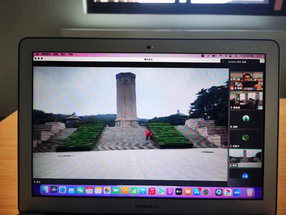 本次活动邀请淮海战役纪念馆贾萍副馆长作为主讲人。淮海战役纪念馆位于江苏省徐州市东南郊的凤凰山东麓,建在淮海战役纪念塔的东南,这是一座具有民族特色的建筑。2007年7月17日,坐落在江苏省徐州市的淮海战役纪念馆新馆经过三年建设,全部完工并免费对外开放。在贾馆长的带领下,大家怀着无比崇敬的心情云端瞻仰了烈士纪念塔,认真聆听革命的事迹,共同缅怀先烈丰功伟绩,感受着那战火纷飞的峥嵘岁月。随后,党员们云端参观了塔下围廊,墙壁上镌刻着党和国家领导人题词以及三万多名烈士名录,大家肃穆静立,表达对革命先烈的崇高敬意。