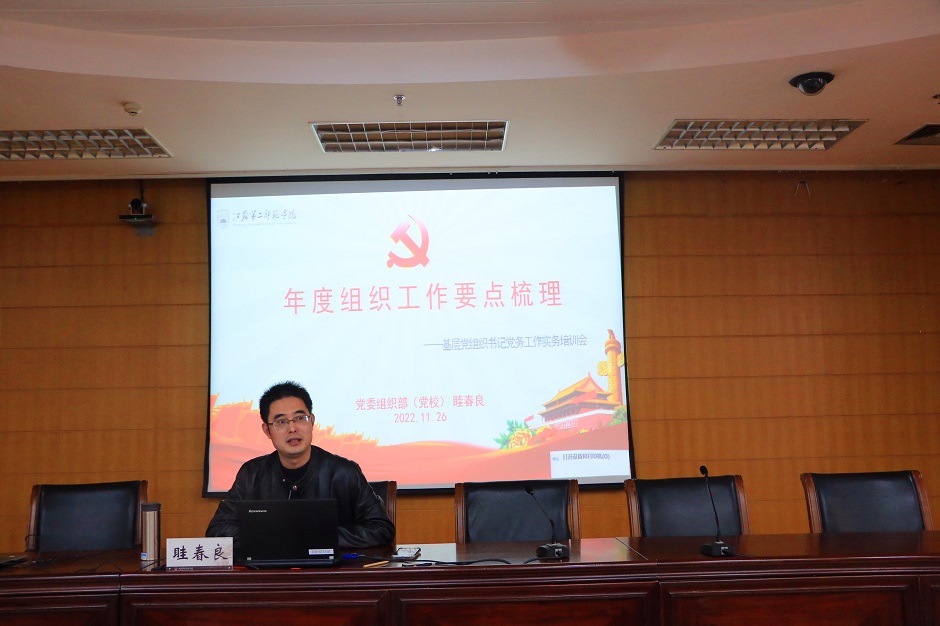 11月26日,我校2022年基层党组织书记专题培训班第二讲、第三讲及基层党组织书记工作经验分享活动于草场门校区举行。全体基层党组织书记参与会议。会议由党委组织部、党委统战部部长张其飞主持。