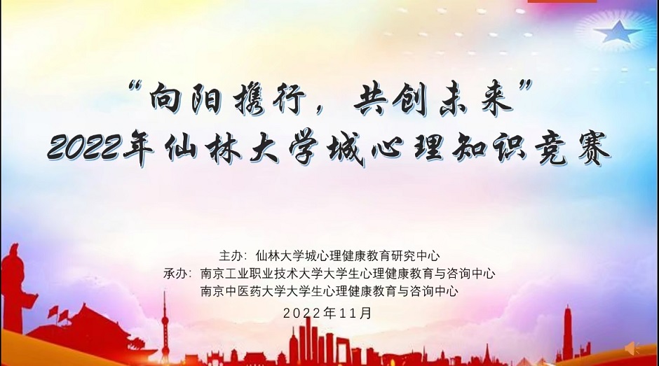 11月30日,仙林大学城心理健康教育研究中心在线上举办“向阳携行共创未来”2022年仙林大学城心理知识竞赛决赛,共10个高校入围决赛,我校物理与信息技术学院李培文、何安琪、周可可同学组成的代表队荣获二等奖。