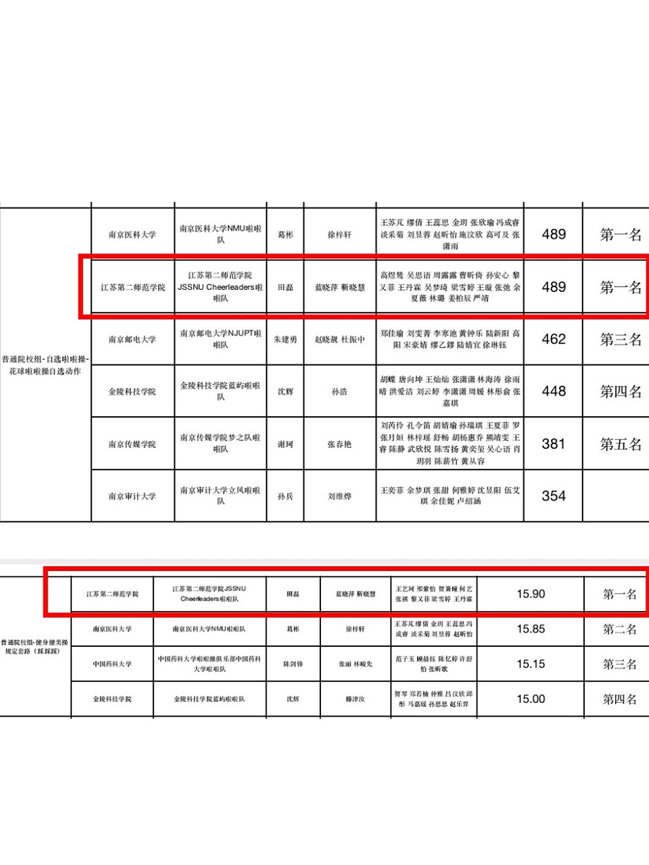 12月24-25日,由江苏省学生体育协会主办的2022年江苏省大学生啦啦操、健美操锦标赛于12月24-25日顺利举行,本次比赛共有来自全省37所院校的647名运动员参加。