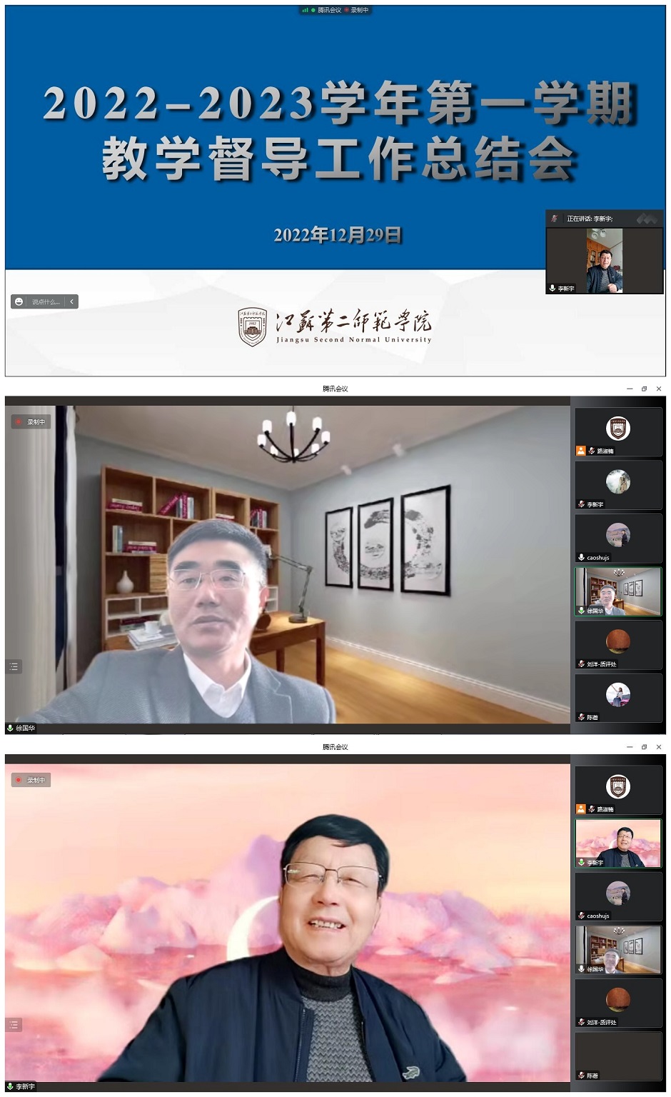 12月29日,我校以线上会议方式召开2022-2023学年第一学期教学督导工作总结会。校长徐国华出席会议,校教学督导组全体成员,教务处、质评处处长陈蓓,质评处副处长吴晋及相关工作人员参加会议。会议由校教学督导组组长李新宇主持。
