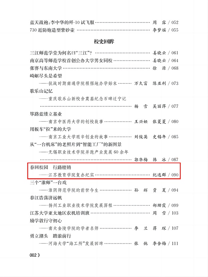 为全面贯彻落实习近平总书记关于做好新时代档案工作的重要指示精神,发掘利用好高校档案资源,切实担负起档案工作“存史资政育人”的使命,江苏省高校档案研究会历时三年,几易其稿,组织编写并出版了《回眸与传承——江苏高校档案里的故事》一书。该书共收录全省各高校 “档案里的故事”作品113篇,分为红色记忆、名家大师、校史回眸、家国情怀、史海钩沉、登封夺冠、馆藏精品、校友情深、建筑遗存等9个专题。我校档案馆选送的《春回校园 行路铿锵——江苏教育学院复办纪实》入选“校史回眸”篇,讲述了1978年我校边复建边办学、以办学促复建的艰难历程;《戎马书生常春元》入选“校史人物”篇,讲述了我校已故离休教师常春元同志忠党报国的红色故事。