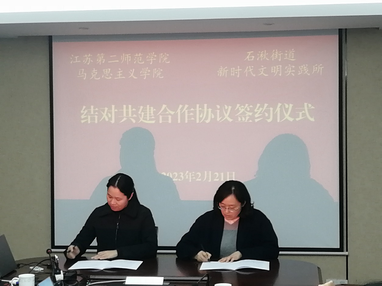 2月21日,马克思主义学院一行5人赴溧水区石湫街道参加校地基层党员冬训“联学共建”签约活动。马克思主义学院院长刘素梅、党总支书记李双江、党总支副书记王成、院长助理王昇受邀参加,石湫街道党工委书记李萍出席“联学共建”合作工作的现场会议。会议由石湫街道党工委副书记、政协工委主任王栋主持。