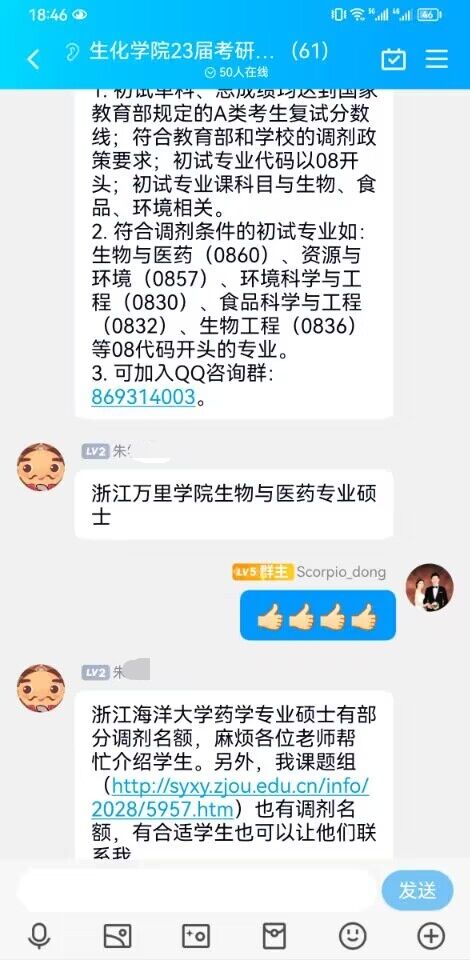 生化学院历来重视学生考研服务工作,通过开设考研专用自习室、召开各类经验交流会、学长学姐结对答疑等方式助力考研学子顺利“上岸”。此次笔试成绩公布后,学院立刻组建考研复试和调剂指导群,各位老师在群中及时分享调剂信息、解答学生疑问,帮助各位考生获取有效经验,做好切实准备。