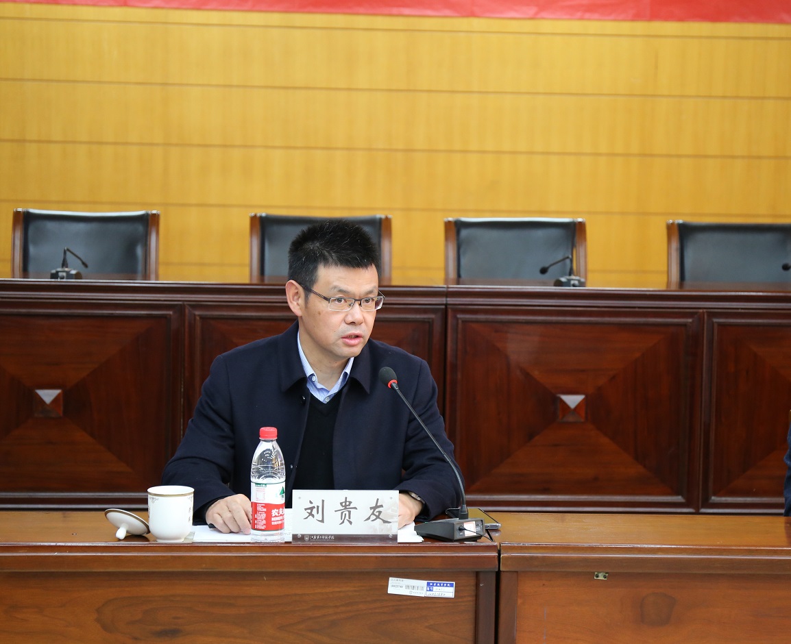 我校校长徐国华、副校长刘贵友,贵州师范大学副校长欧阳恩良、研究生院院长刘瑾,两校相关职能部门以及参与联合培养研究生工作的二级学院领导、导师参加会议。会议开幕式由刘贵友主持。徐国华、欧阳恩良分别代表两校致辞。
