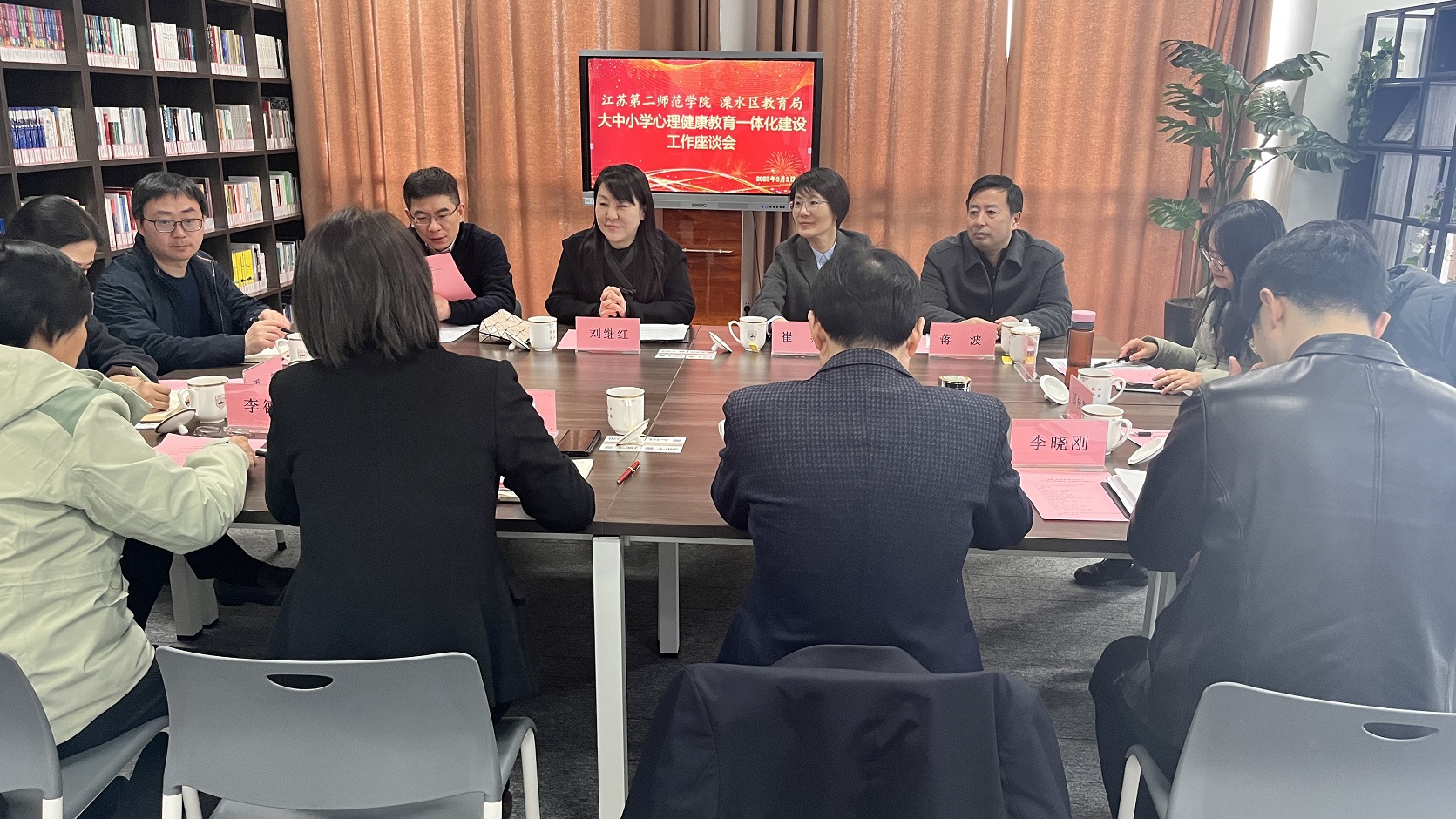 崔燕指出,青少年心理健康问题是群众关注的热点问题,也是纪委进行政治监督很重要的关切点,推进双方此次合作意义重大。我校的发展离不开溧水当地政府的支持与关心,希望通过此次合作与地方政府有更好的链接。刘继红充分肯定了溧水区教育局领导带着问题来、带着团队来,以学生心理健康为切入点寻求双方合作的诚意,表明了我校将一如既往履行好高校服务社会、服务地方政府的重要职能,双方将在心理育人方面进行长期、深入合作。双方一致同意,此次会后,成立工作指导小组,形成有效的工作机制,进一步细化合作项目和工作措施,并以此次合作为起点,拓展在艺术教育、体育等多方面的教育合作。