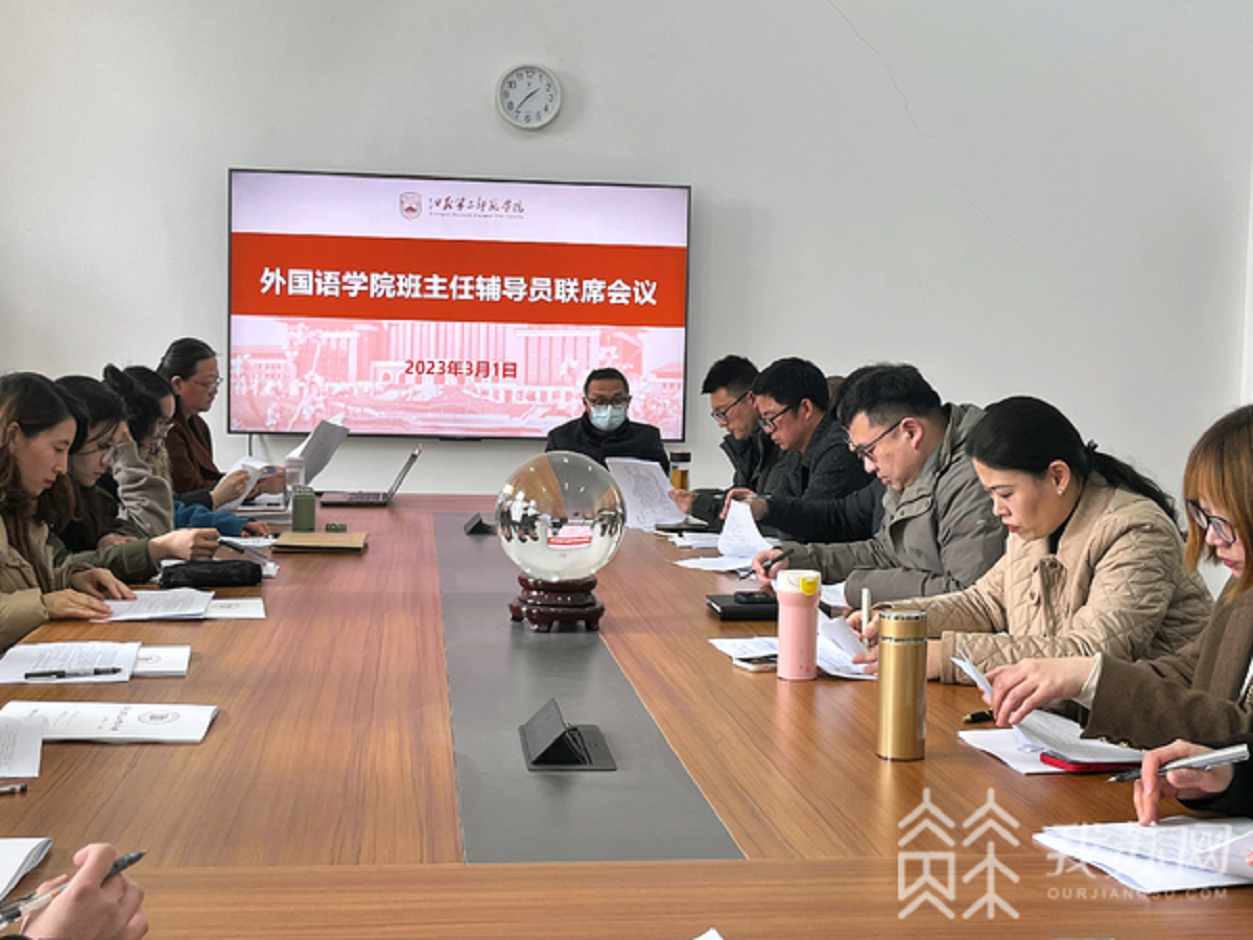 据了解,班主任与辅导员联席会议是江苏第二师范学院外国语学院一直坚持的项目,是促进学生工作有效开展的重要抓手。该校外国语学院历来重视学生的心理健康工作,通过开展心理工作研判会议、班主任辅导员联席会议、心理健康主题活动月等各种形式,认真把学生心理健康工作抓牢抓实,把各项风险有效防范,及时化解。