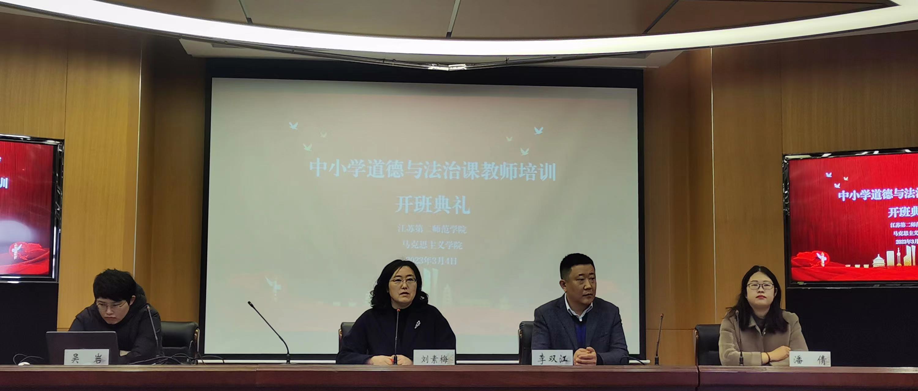 2023年3月3日至6日,我校马克思主义学院承办江苏省中小学道德与法治课教师培训班。马克思主义学院院长助理吴岩主持开班仪式,马克思主义学院院长刘素梅、院党总支书记李双江、学院教师和来自全省各中小学的97名老师参加此次培训。