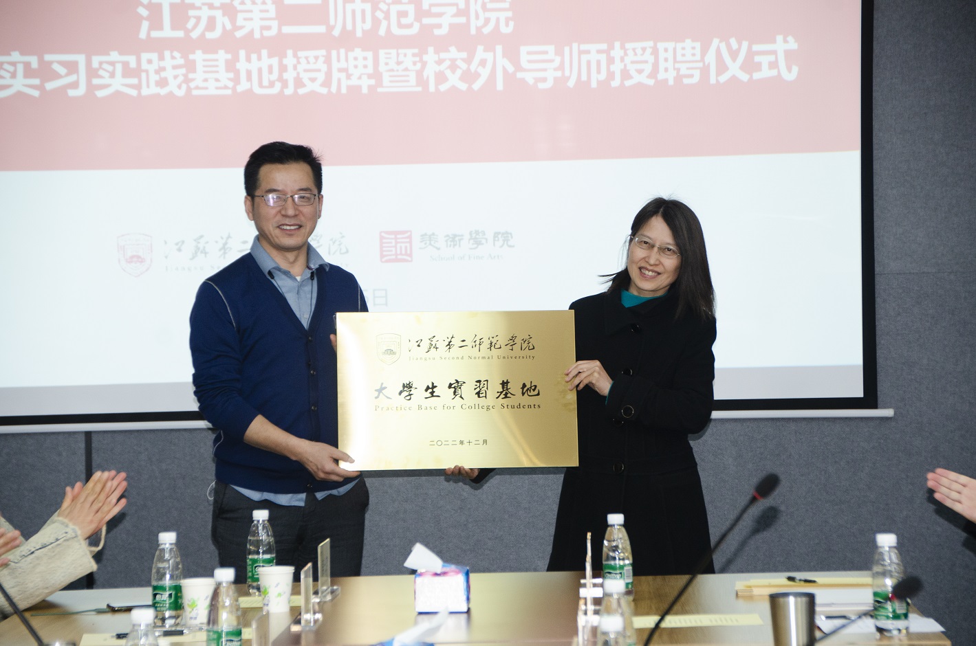 2023年3月15日下午,江苏第二师范学院美术学院在多功能会议厅举办大学生实习、实践基地授牌暨校外导师聘任仪式。本次会议由美术学院院长路明教授主持。