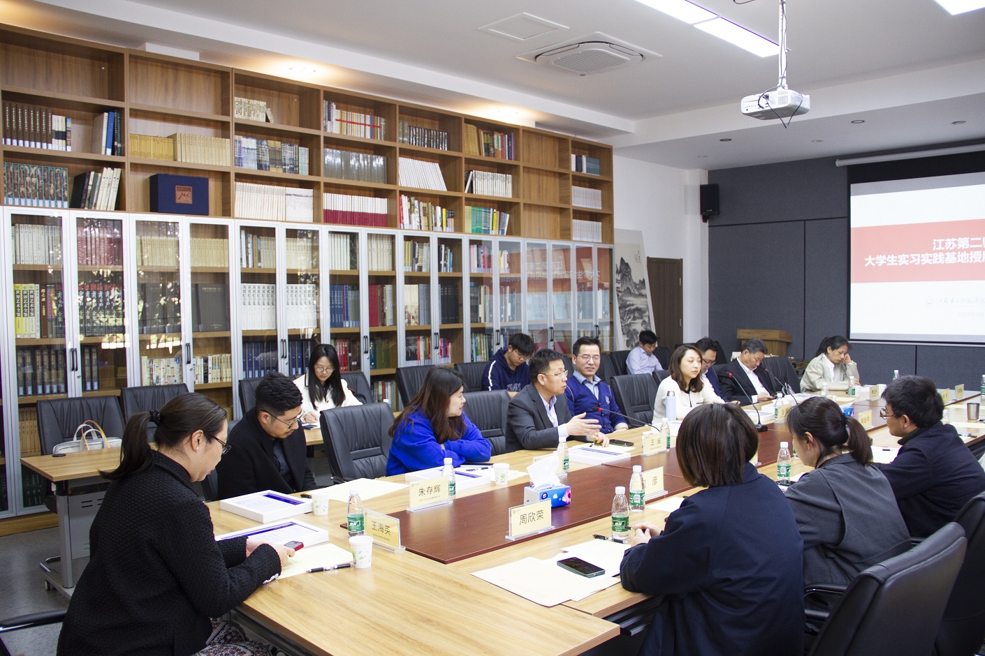 本次实习、实践基地既有以师范类专业实习的南京市著名中小学,也有能为美术学院各专业提供优质平台的省内企业、院所。参加本次仪式的领导和嘉宾有:无锡美术馆副馆长蒋凌、无锡弘展文化旅游投资有限公司董事长傅红庚、南京外国语学校艺术教研组组长曹启海、南京师范大学附属中学树人学校美术教研组组长吴长燕、南京民办育英外国语学校艺术组组长王海英、南京中智文化创意研究院院长王波、南京市园林规划设计院文产旅综合规划所所长汪娟、南京铭邺承天装饰设计有限公司副总经理夏韵、南京一作文化传媒有限公司艺术总监朱存辉、安徽东流古镇写生基地总经理杨玉贵、南京云锦研究所有限公司李晓伟。美术学院副院长陶金鸿,美术学院各教研室主任和教师代表。