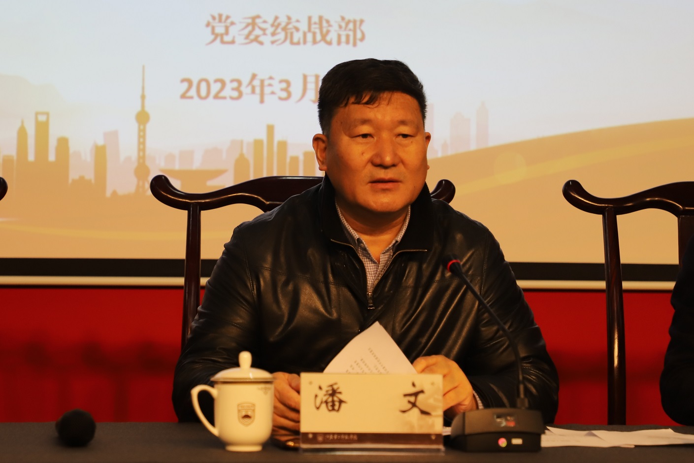 张其飞通报我校事业发展情况,并总结我校近年来统一战线重点工作,部署2023年统战工作,希望各民主党派及统战团体在会后继续开展形式多样的学习活动,立足资源优势,努力为推动学校事业和全省高质量发展作出积极贡献。