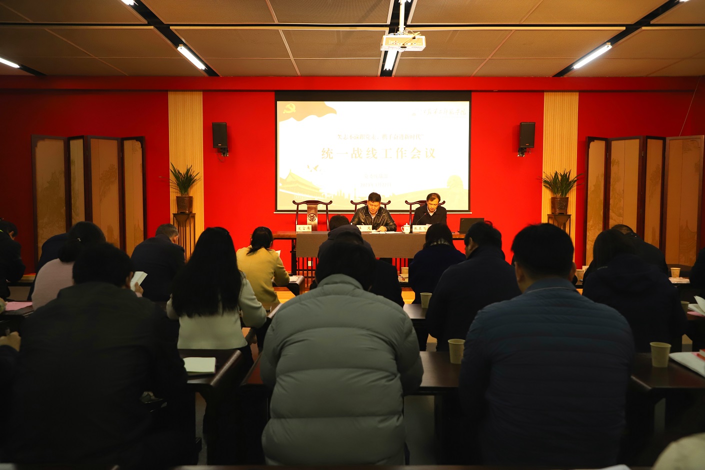 3月22日下午,我校在石湫校区尚美楼“同心˙传承”教育实践基地召开统一战线工作会议。党委副书记潘文,党委常委、党委组织部部长、党委统战部部长张其飞,各民主党派、统战团体代表参加会议。会议由张其飞主持。
