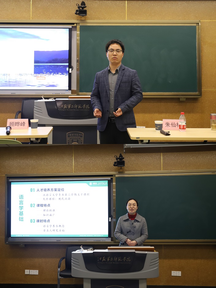 文科组活动由教师教学发展中心主任顾晔峰主持,我校第九届“教学十佳”获得者朱仙林、南京师范大学文学院冯敏萱老师分别进行了课堂教学展示。朱仙林老师示范课内容为《文献学意识的提出及其内容》,冯敏萱老师示范课内容为《语言学基础课程:语音的四要素》。