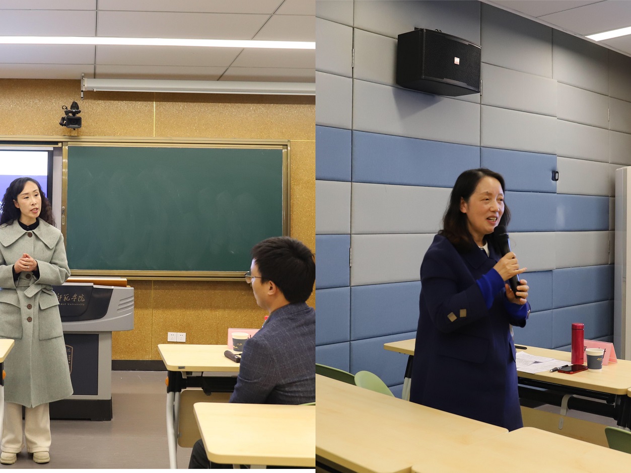 校教学督导张颖炜、曹树老师进行了课堂教学点评。张颖炜高度肯定了两位老师的课堂教学模式和方法,她指出,教师的教学意识应与学科意识相结合,两位老师在课堂互动和教学引导上起到了示范作用。曹树指出,两位老师把枯燥的理论内容变得生动有趣,突出以学生为中心、以问题为导向,问题的抛出与解答环环相扣,课程内容清晰明朗。
