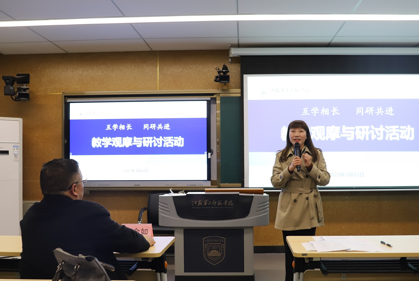 校教学督导刘晓红、高学林老师进行了课堂教学点评。刘晓红指出,两位老师有着很高的职业素养,授课过程思路清晰、循序渐进,取得了良好的课堂效果。高学林表示教学设计中应当注入教学理念,要遵循教育教学规律,教学方法要考虑时代和学生的特点,以能吸引学生的方式开展教学,通过问题的设计吸引学生,通过评价形成学习成就,要在潜移默化中融入课程思政和立德树人的要求。