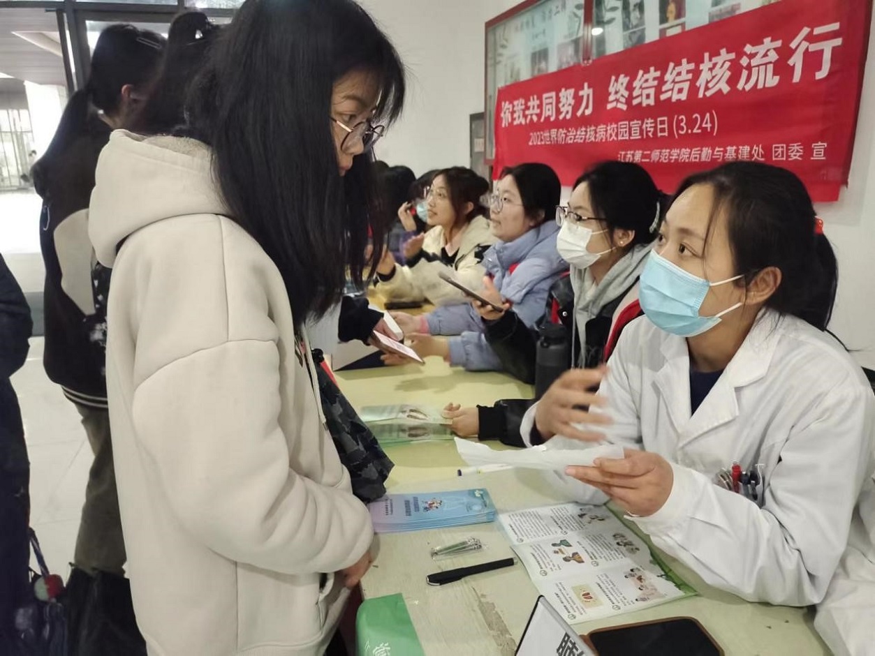 3月24日是第28个世界防治肺结核病日,为营造浓厚的结核病防治氛围,推动结核病防治工作,减少结核病的传播,保障师生身体健康,后勤与基建处联合校团委、溧水区红十字会开展了主题为“你我共同努力,终结结核流行”的肺结核知识校园宣传活动。