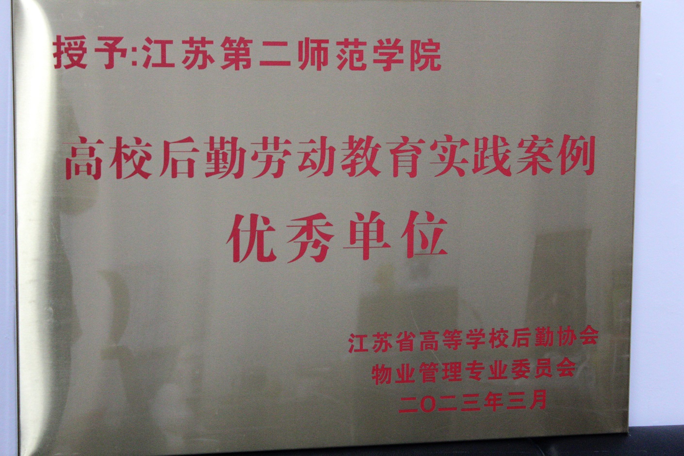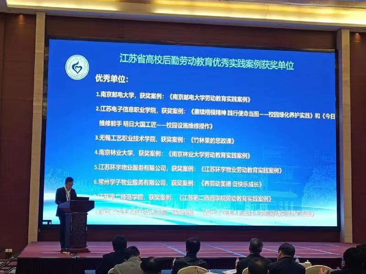 3月16日上午,江苏省高等学校后勤协会物业管理专业委员会2022年年会在淮安市隆重举行,来自全省91家高校近200名代表参加了本次年会。在本次年会中我校荣获2022年江苏省高校后勤劳动教育实践案例优秀单位。