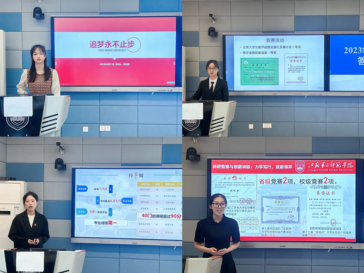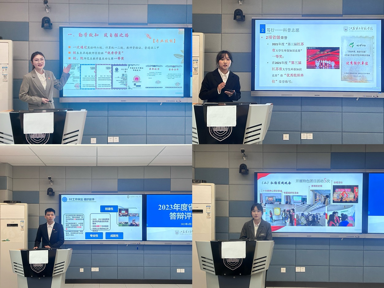 本次评审会重点在于以评促学、以评促教,各学院通过了解其他学院的学生状况,反思学院培养方式,加强彼此交流,涵育优良学风。评审过程中,来自14个学院的学生展示自己在校期间的优良表现,他们中有发挥专业特长,率团队屡次获得市级、国家级各类文艺比赛好成绩但始终虚心向上的“学霸”;有身为班长,带领班集体获得诸多荣誉,践行师范生的使命,积极投入社会实践志愿活动中的践行者;有致力于学生工作,积极参与学校各类活动,参与我校各部门工作的学生干部;有致力于科学研究,肯下功夫,在大学期间发表多篇文章的科研之星。在先进班集体的评选中,有的班级利用专业特色,创建班级公众号,为师生科普专业知识;有的班级同学共同进退,相互帮扶,打造班级优良学风。