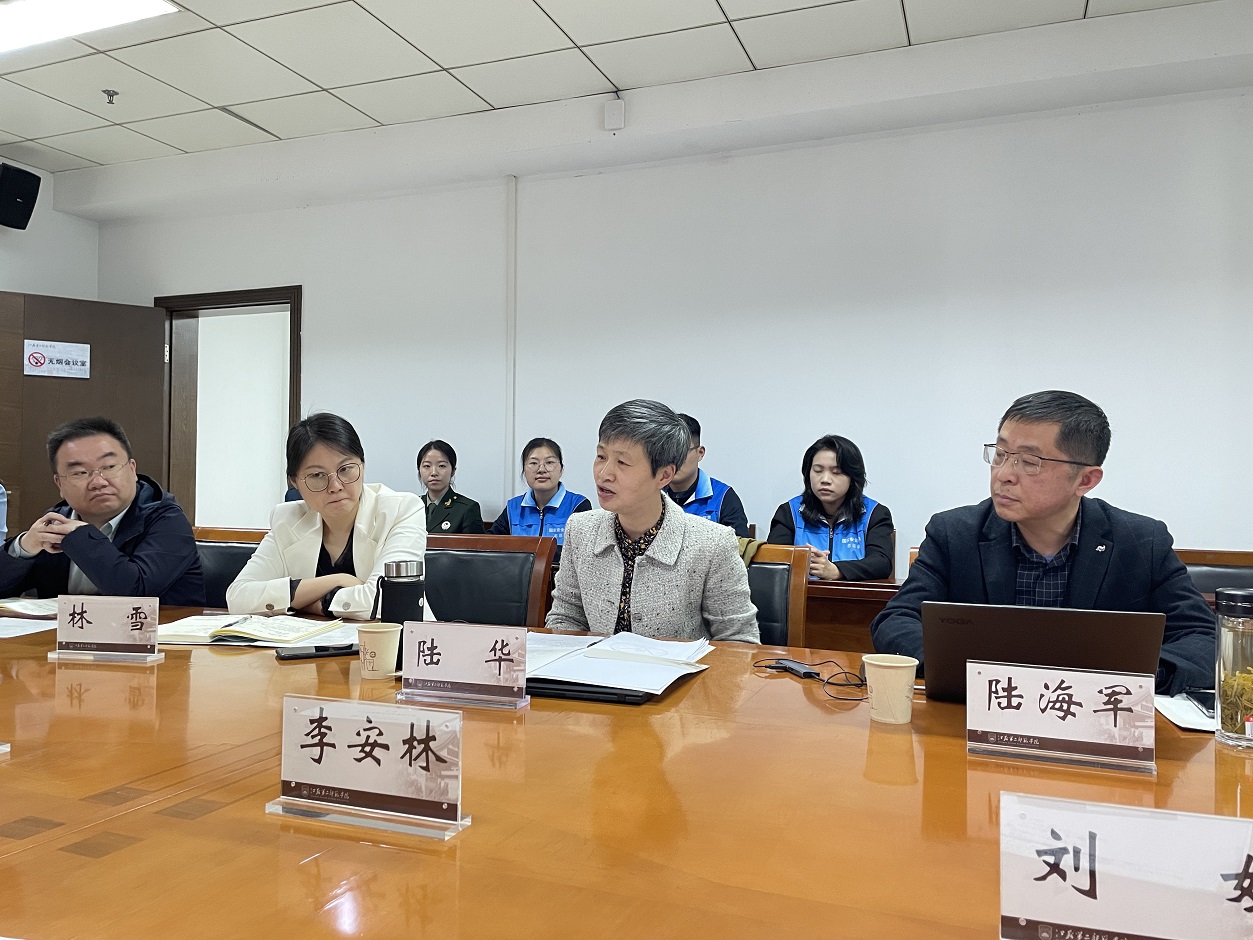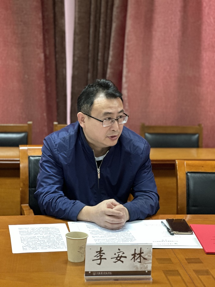 李安林致词,他向与会专家介绍了学校发展历史、师资队伍建设、学生能力素质培养等情况。校大学生国家安全教育项目指导教师黄晓波向与会专家介绍了学校国家安全教育基础、近期的项目调研情况和中长期发展设想。