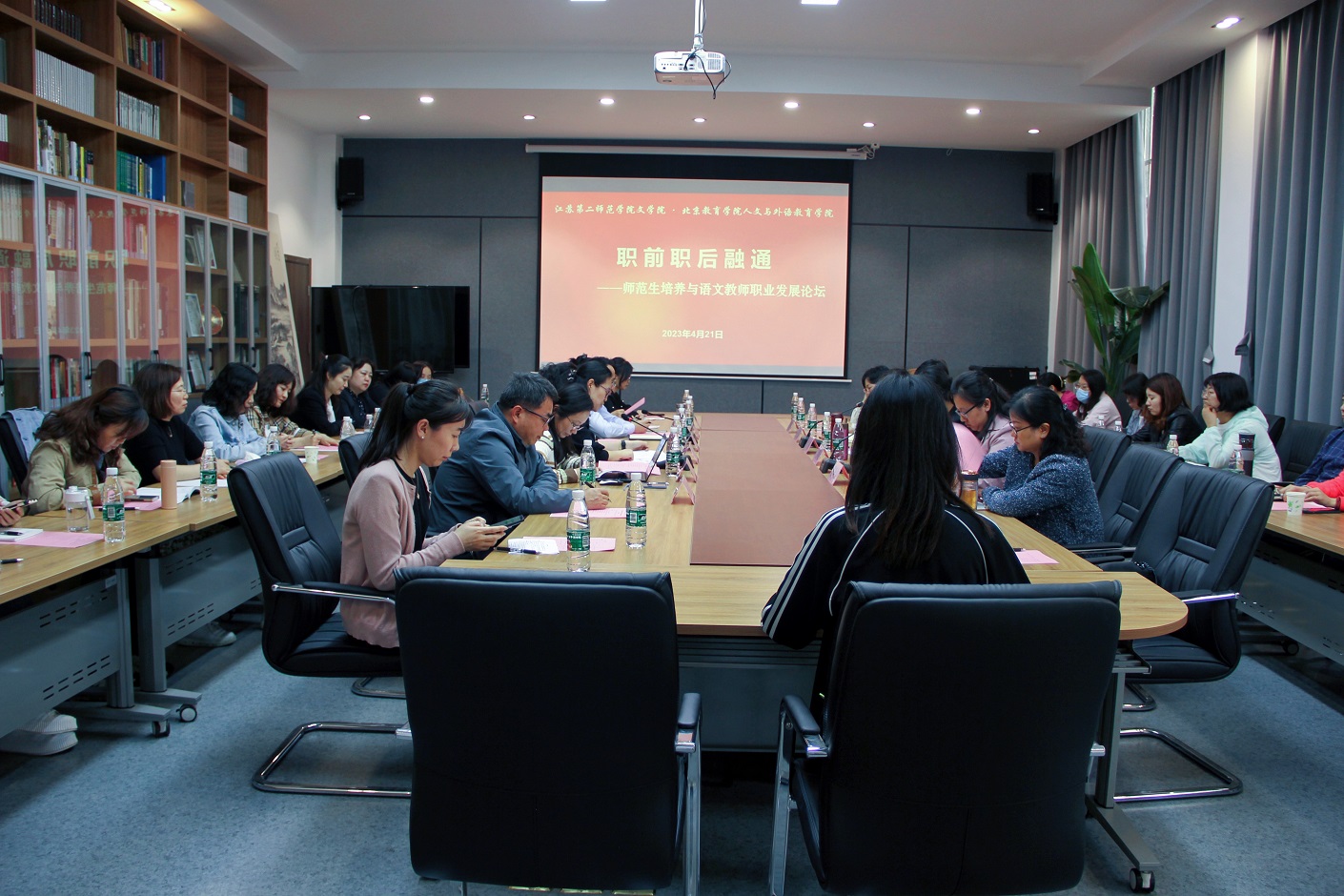 4月21日下午,北京教育学院人文与外语教育学院语文教学研究团队来我校访问。双方对接我校“职前职后融通、教育科研引领、实践取向鲜明”的办学特色,以“职前职后融通——畅谈师范生培养与语文教师职业发展”为主题,在我校草场门校区图书馆综合会议室开展研讨活动。