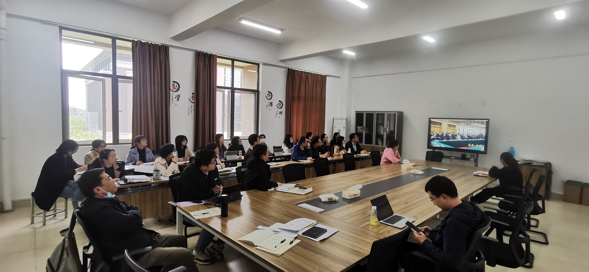 4月26日下午,地科院组织学习贯彻习近平新时代中国特色社会主义思想主题教育动员会议,学院全体党员参加会议,党总支书记徐孝彬作了动员讲话。