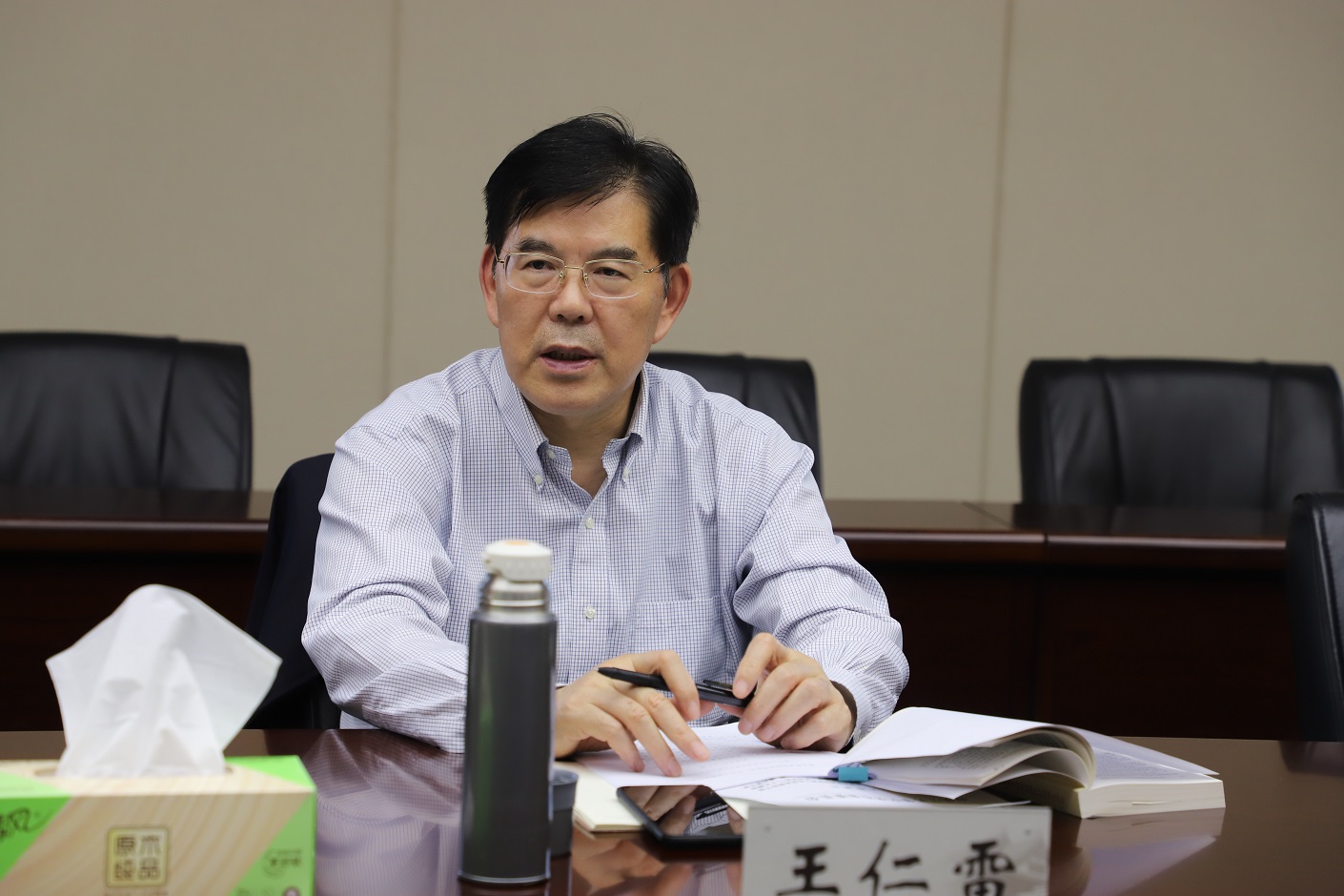 5月5日下午,党委书记王仁雷主持召开学习贯彻习近平新时代中国特色社会主义思想主题教育读书班暨党委理论学习中心组学习会,围绕“全面从严治党专题”集中读书研讨。校长徐国华,校领导刘继红、潘文、崔燕、姚振标、陈金如、刘贵友和中心组其他同志参加学习会。