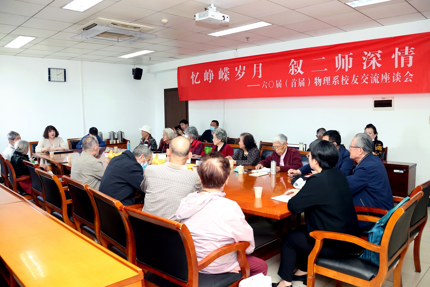 葛传楠向校友代表介绍了物理与信息工程学院的历史沿革、专业特色、师资力量、科研成果、培养成效等情况。她表示,物理系六〇届毕业生是我校首届本科校友,是学校在全国教育学院中率先举办本科教育的见证者、亲历者,与母校情谊笃厚。她祝福各位校友身体健康,常回母校看看。