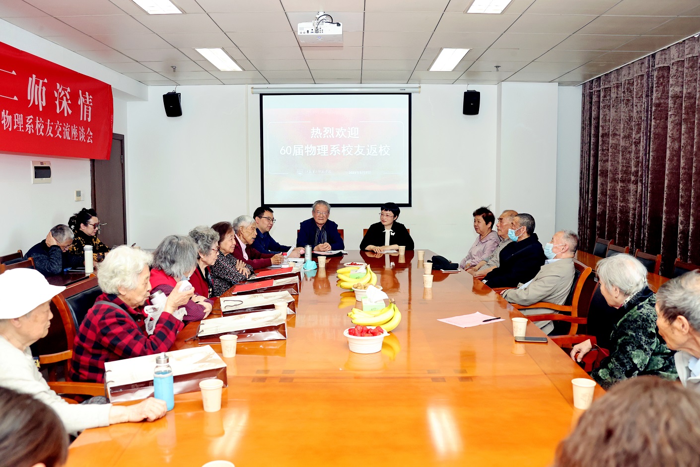 六〇届物理系校友代表参观了草场门校区,观看了建校七十周年宣传片,对母校发展变化之大表示由衷感叹、欣慰和自豪。他们勉励在场的在校生代表,珍惜时光,刻苦学习,不负时代,不负华年。