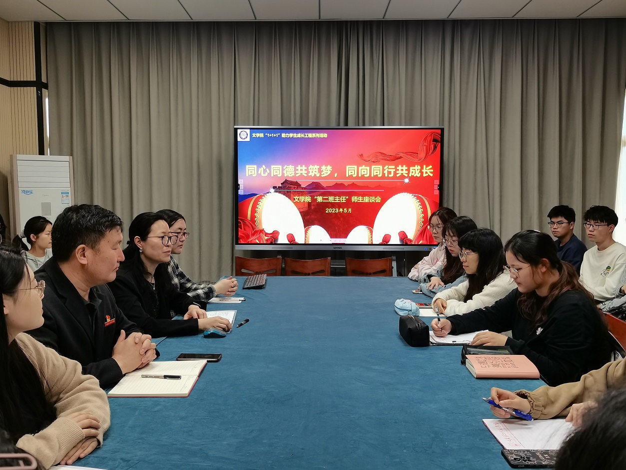 为深入开展学习贯彻习近平新时代中国特色社会主义思想主题教育,深入一线开展调查研究,聚焦破解难题推动工作。5月11日上午,校党委副书记潘文深入文学院2021级汉语言文学(师范定向)班开展主题教育专题调研活动,并以 “第二班主任”身份,围绕“高校大学生意识形态安全教育”这一主题与同学们进行交流互动。文学院党总支书记刘莹主持调研会。2021级汉语言文学(师范定向)班全体同学及辅导员王亚男参加座谈会。