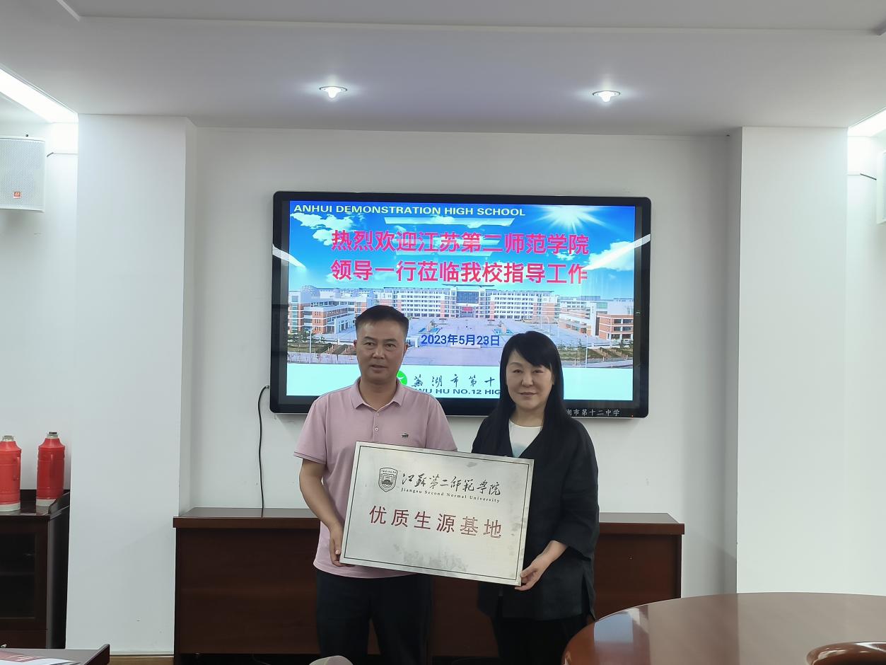 5月23日,校党委副书记、副校长刘继红,副校长陈金如及招生就业处相关人员前往芜湖市第十二中学开展“优秀生源基地”授牌仪式。