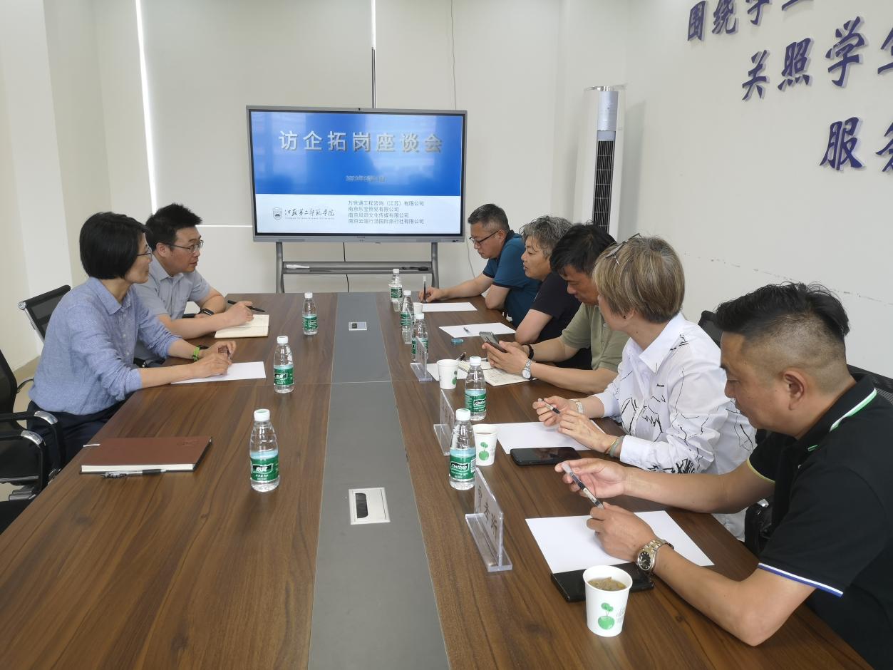 5月31日下午,我校召开访企拓岗交流座谈会,邀请到南京阳光心汇心公益基金会秘书长韦宇群、万世通工程咨询(江苏)有限公司执行董事袁泉、南京乐宝贸易有限公司董事长贾孝珩、南京风颂文化传媒有限公司董事长朱力、南京云端行游国际旅行社有限公司创始人华晓冬来我校开展交流访谈。校党委常委、纪委书记崔燕出席会议并讲话,招生就业处负责人参加会议。