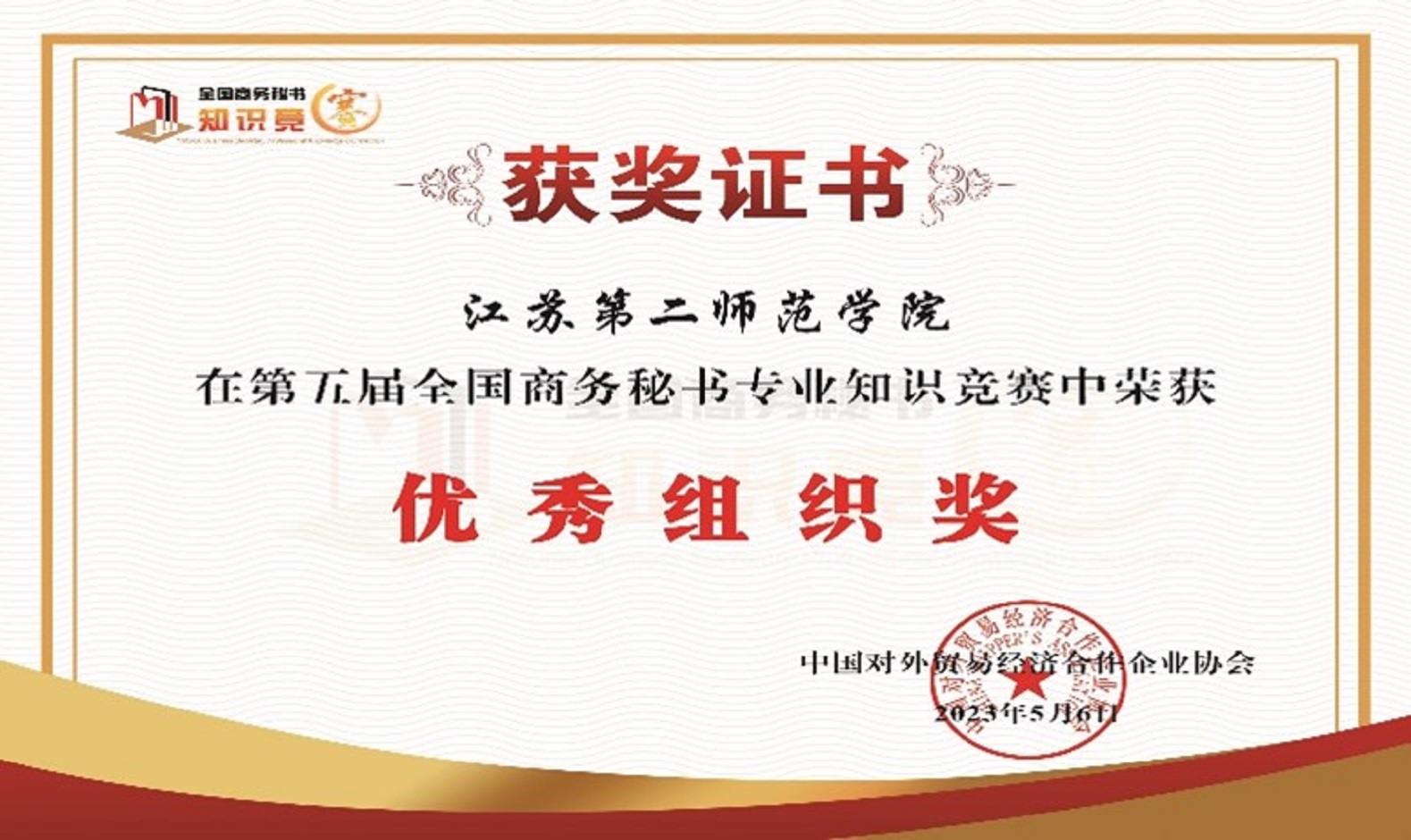 全国商务秘书专业知识竞赛由中国对外贸易经济合作企业协会主办,全国商务秘书与行政助理专家委员会承办,中国对外贸易经济合作企业协会全国外经贸从业人员考试中心协办,是秘书学专业唯一的全国性学科竞赛。本届竞赛共有来自全国20个省、市、自治区的66所院校近5000名学生参加,省内有扬州大学、南京审计大学、南京晓庄学院、江苏理工学院、常熟理工学院等10余所高校参与。