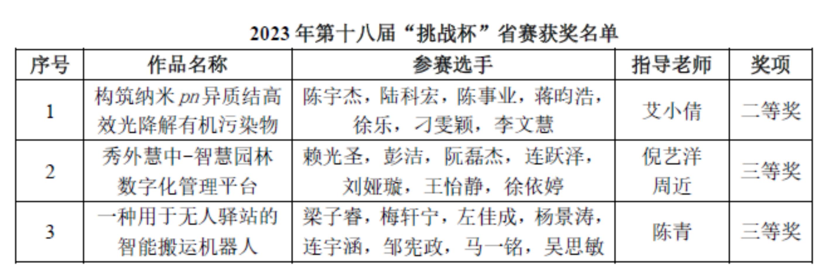 5月26-28日,第十八届“挑战杯”全国大学生课外学术科技作品竞赛省赛在常州举行,我院艾小倩、倪艺洋、周近、陈青四位教师指导的3项作品获“黑科技”专项赛二等奖1个和主体赛三等奖2个。
