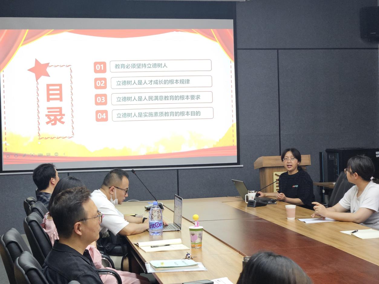6月1日下午美术学院党总支书记王玲玲向全体党员讲授了一场题为“立德树人 育人为本”的主题教育专题党课。