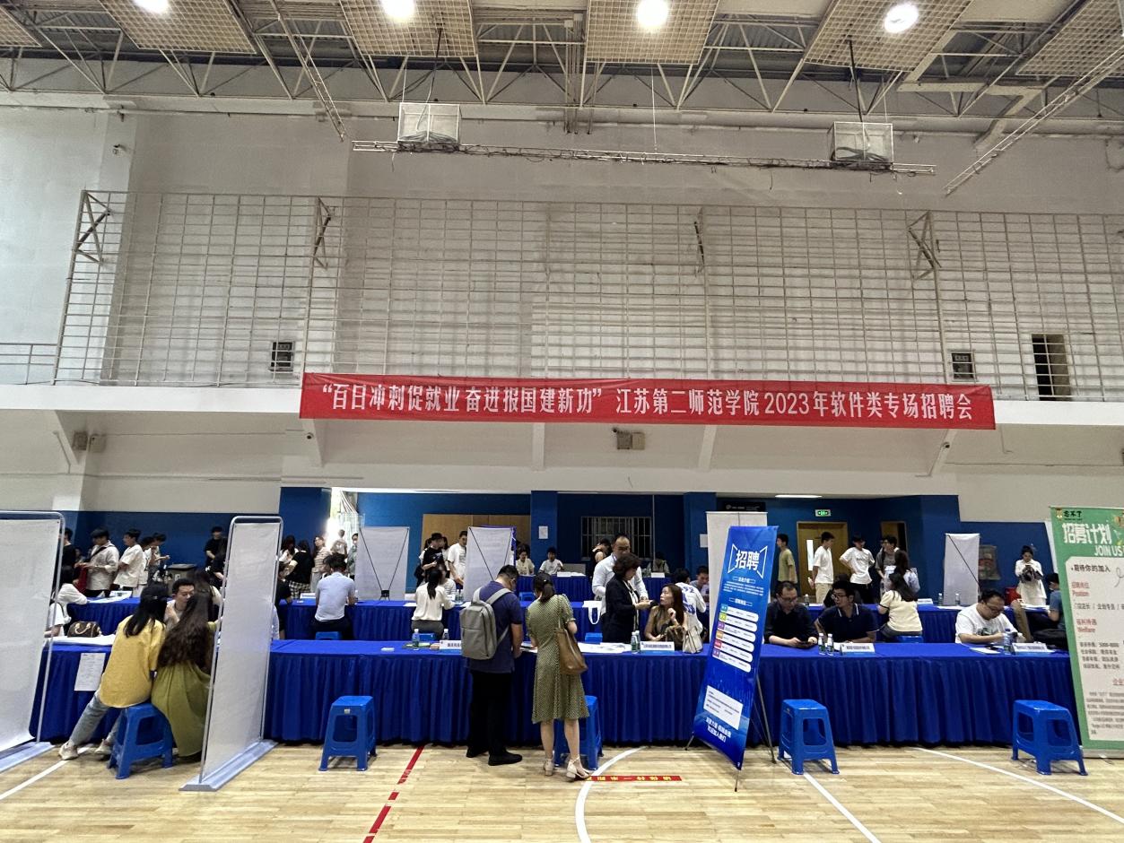 此次招聘会由江苏省软件行业协会主办,江苏第二师范学院招生就业处承办,共吸引了22家知名软件类企业参会,如江苏国信安全技术有限公司、江苏汉微软件、南京智数科技有限公司。这些企业共为毕业生提供500多个招聘岗位。