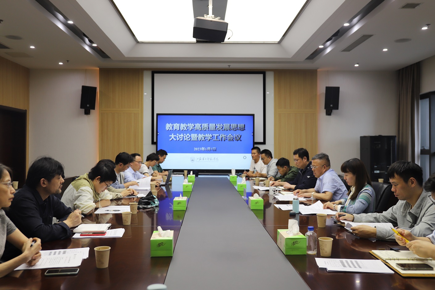 会议第二阶段,举行教育教学高质量发展思想大讨论活动。14个学院的教学院长围绕“全面提高人才自主培养质量,推进产教融合,推动新时代本科教育教学高质量发展”主题依次作了交流发言。与会人员还就发言中提到的共性问题,进行了探讨。