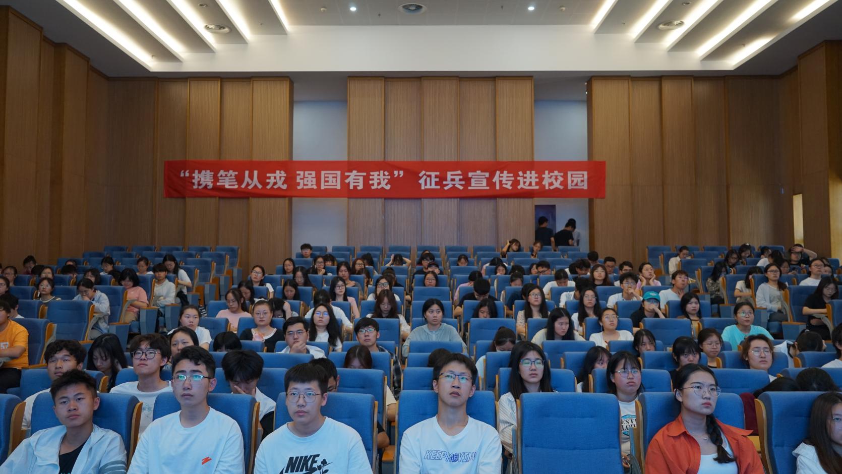 6月7日,高淳区人武部部长周炜、政工科干事孙秀兰、砖墙镇武装干事朱翔宇一行来我校石湫校区开展“征兵宣传进校园”活动。校人武部办公室、退役大学生事务办公室主任冯丽娜,文学院退役大学生代表欧阳诗淇,以及200多名有参军意向的学生参与了活动。活动由校人武部副部长邵保刚主持。