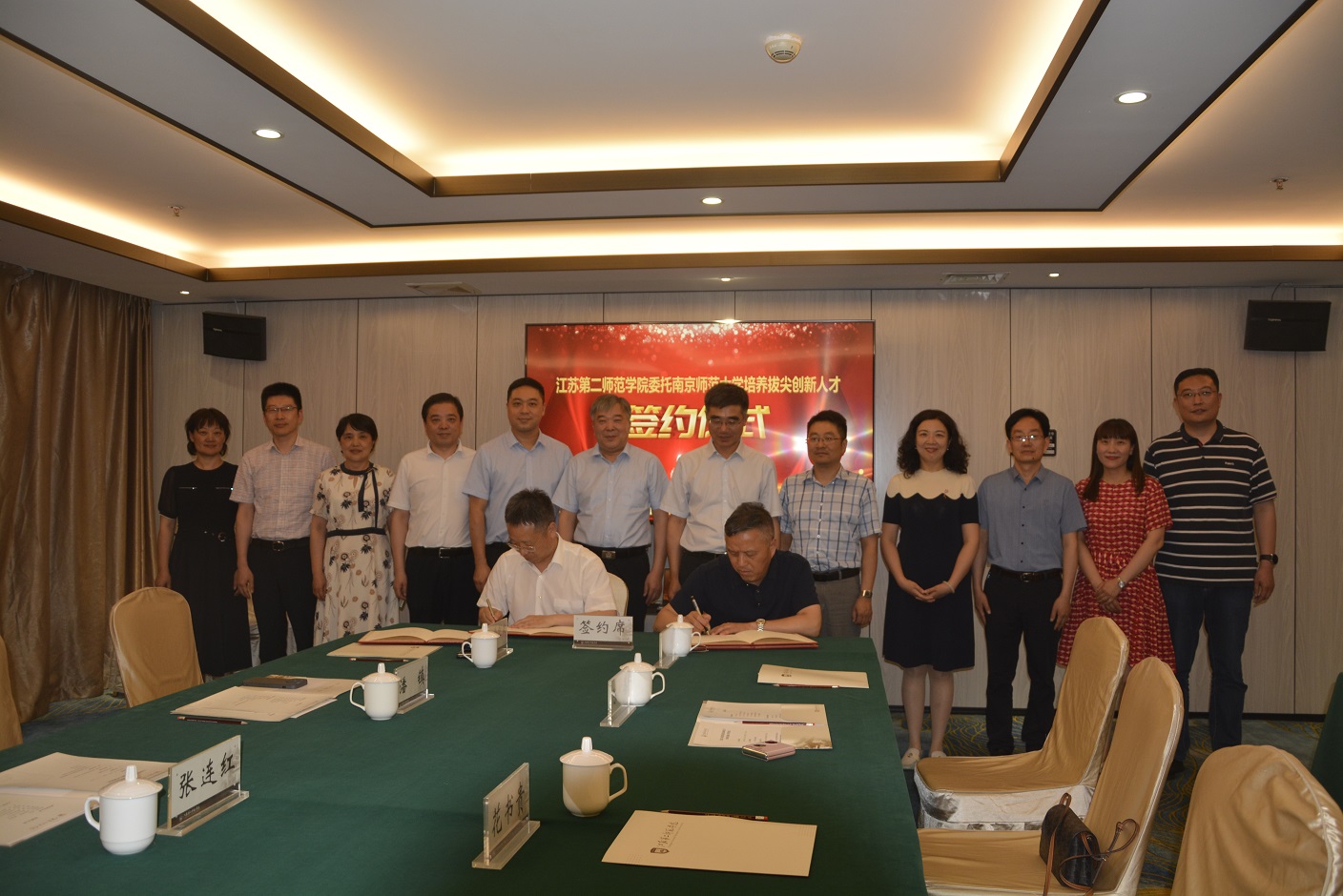 6月15日,江苏第二师范学院委托南京师范大学培养拔尖创新人才签约仪式在草场门校区举行。我校校长徐国华、副校长陈金如,南京师范大学校长华桂宏、副校长张连红,两校相关职能部门以及参与拔尖创新人才培养工作的二级学院领导出席签约仪式。签约仪式由陈金如主持。徐国华、华桂宏分别代表两校致辞。