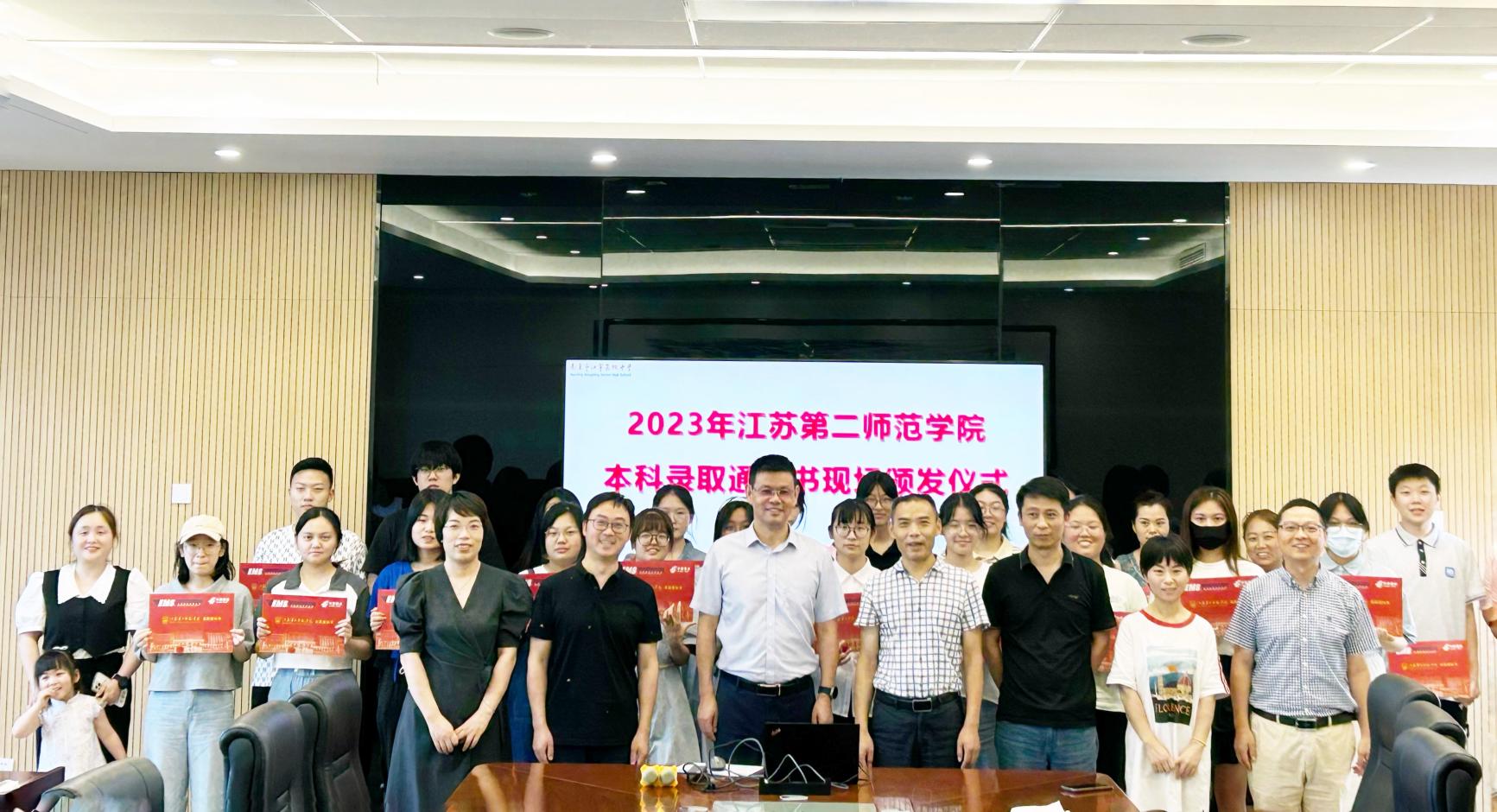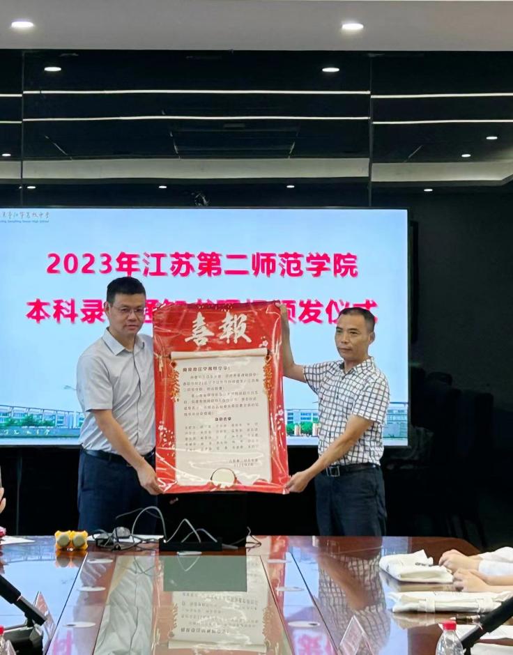 8月1日下午,副校长刘贵友、学前教育学院党总支书记宋学军、招生就业处副处长李佶莲一行前往南京市江宁高级中学发放2023级普本新生录取通知书。江宁高级中学副校长张格波、高三年级组组长倪仁宗、25名我校2023级新生及新生家长出席录取通知书发放仪式。