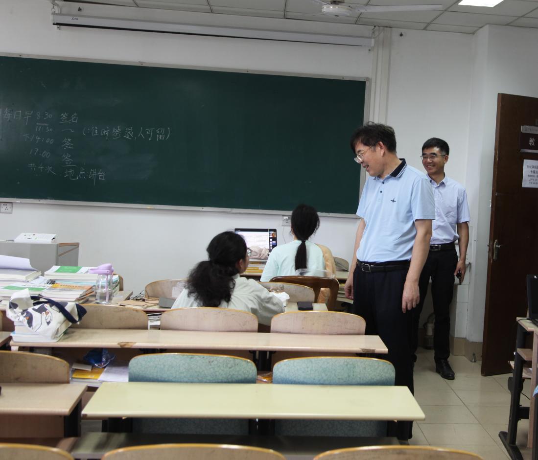 每到一处,王仁雷、徐国华都与在岗教职工亲切交流,代表学校向坚守岗位、辛勤工作的一线教职工致以诚挚敬意,高度肯定他们兢兢业业的工作态度和无私奉献的敬业精神,并再三叮嘱他们注重劳逸结合和防暑降温,科学合理、保质保量完成暑期工作任务。教职工们纷纷感谢学校领导的关心和问候,表示将继续坚守岗位、履职尽责,全力保障暑期学校安全稳定和各项工作正常有序运转。