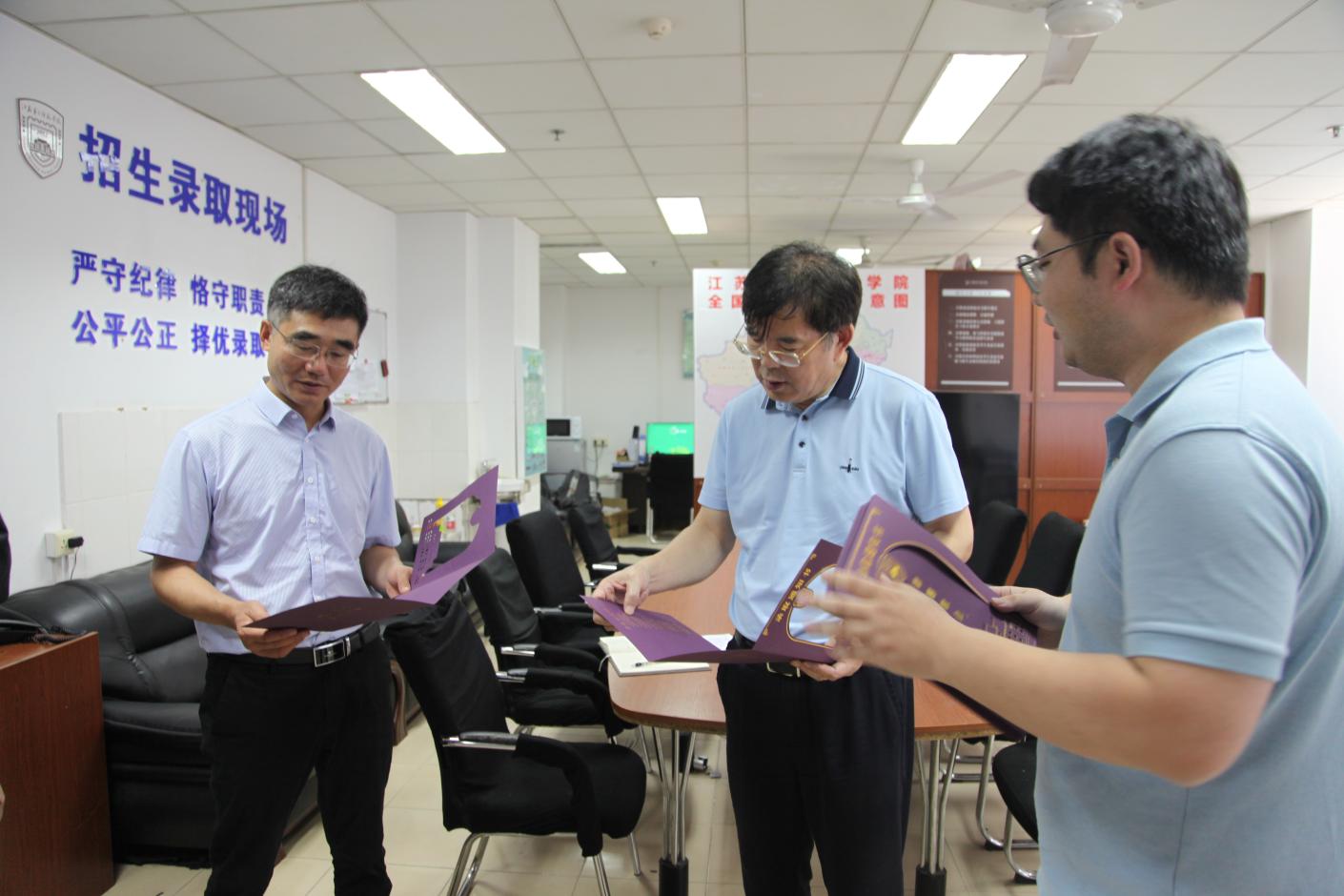 在石湫校区,王仁雷、徐国华一行前往宿舍工地、健康驿站、南门哨岗等地走访慰问,向一线工作人员表达亲切问候。在草场门校区,王仁雷、徐国华看望慰问了后勤、安保、招生工作人员和暑期留校学生。在招生录取工作现场,王仁雷、徐国华听取今年招生录取工作情况汇报,并对进一步做好招生录取工作提出指导意见和工作要求。在与留校学生的交谈中,王仁雷、徐国华询问了同学们的实际需求,鼓励大家科学规划假期时间,坚持刻苦学习、健康生活。