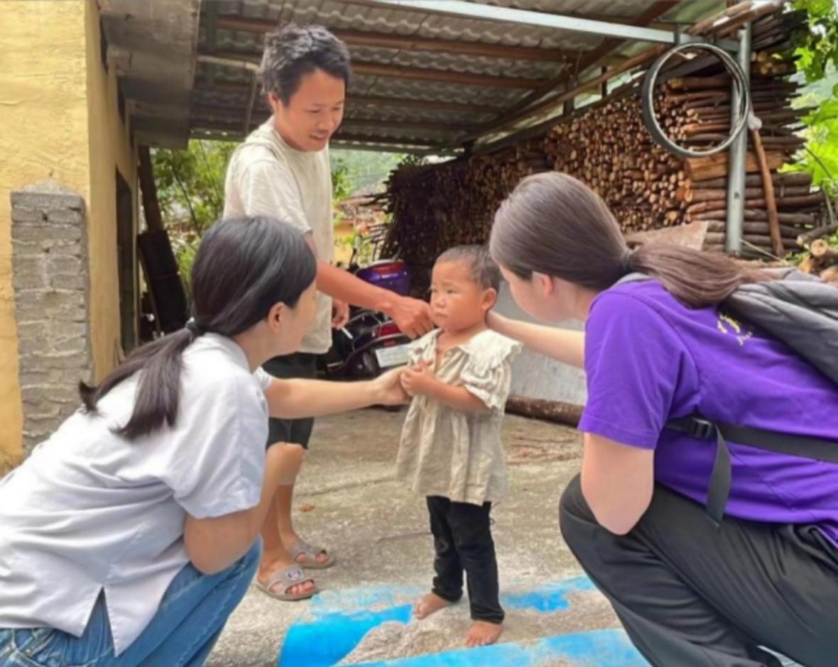 志愿者走访贫困儿童家庭,开展幼儿园招宣工作