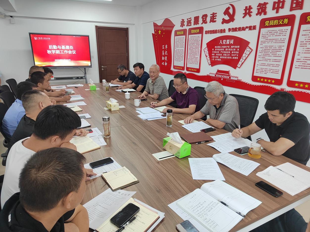2023年秋学期如约而至,为迎接新学期的到来,确保师生工作、学习和生活正常开展,8月30日上午,后勤与基建处在石湫校区后勤楼314会议室召开了秋学期工作会议,会议由赵俊处长主持,校党委常委、副校长姚振标出席会议并发表讲话,部门全体在编人员和公司骨干成员参加会议。