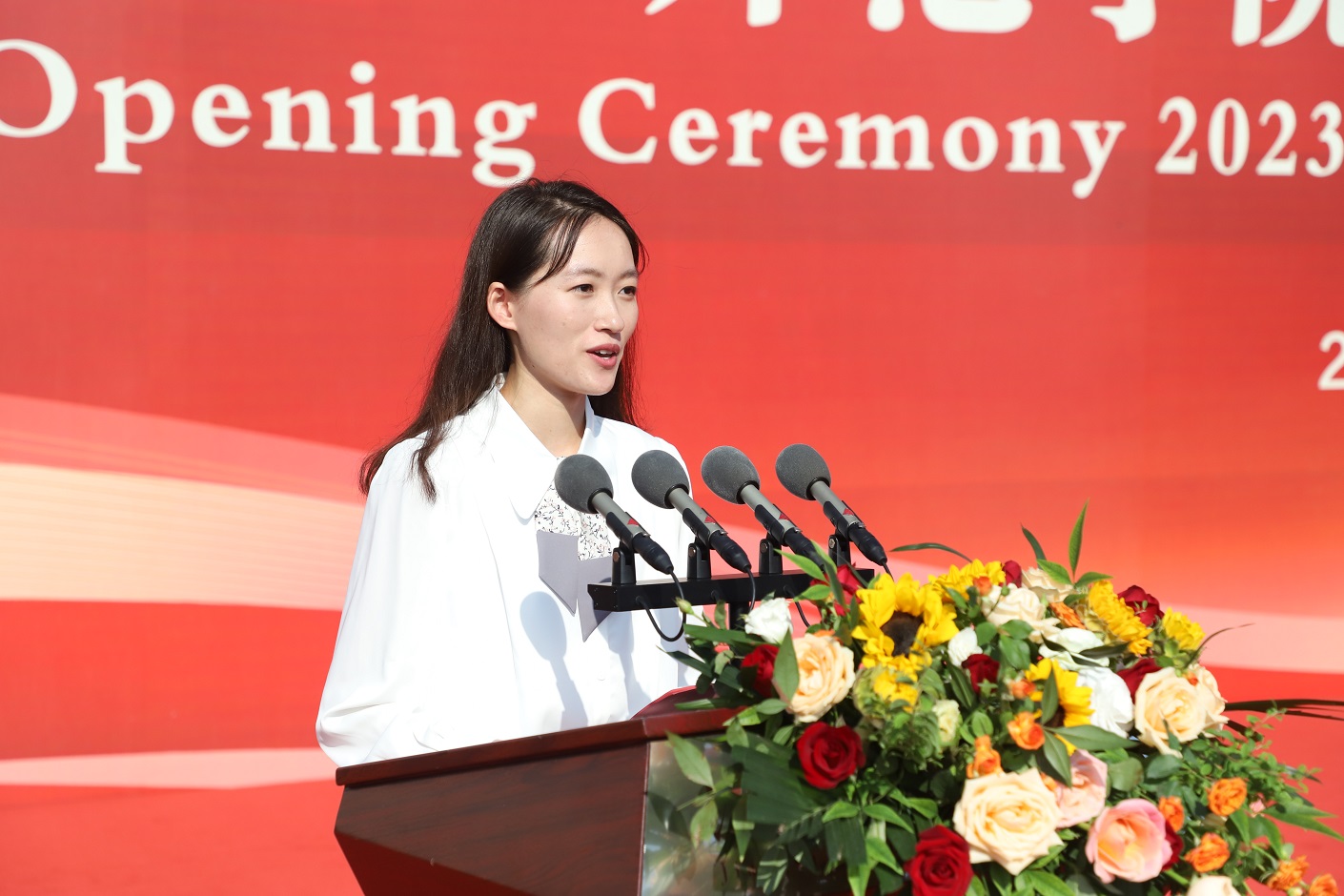 2020级生物科学(师范定向)普本班冯慧琳作为在校生代表发言。她希望学弟学妹们在大学生活中坚定信念、勇于追梦、潜心钻研,夯实知识基础,萃取学术新知,增长本领才干,以青春之我、奋斗之我,为民族复兴铺路架桥,为祖国建设添砖加瓦。