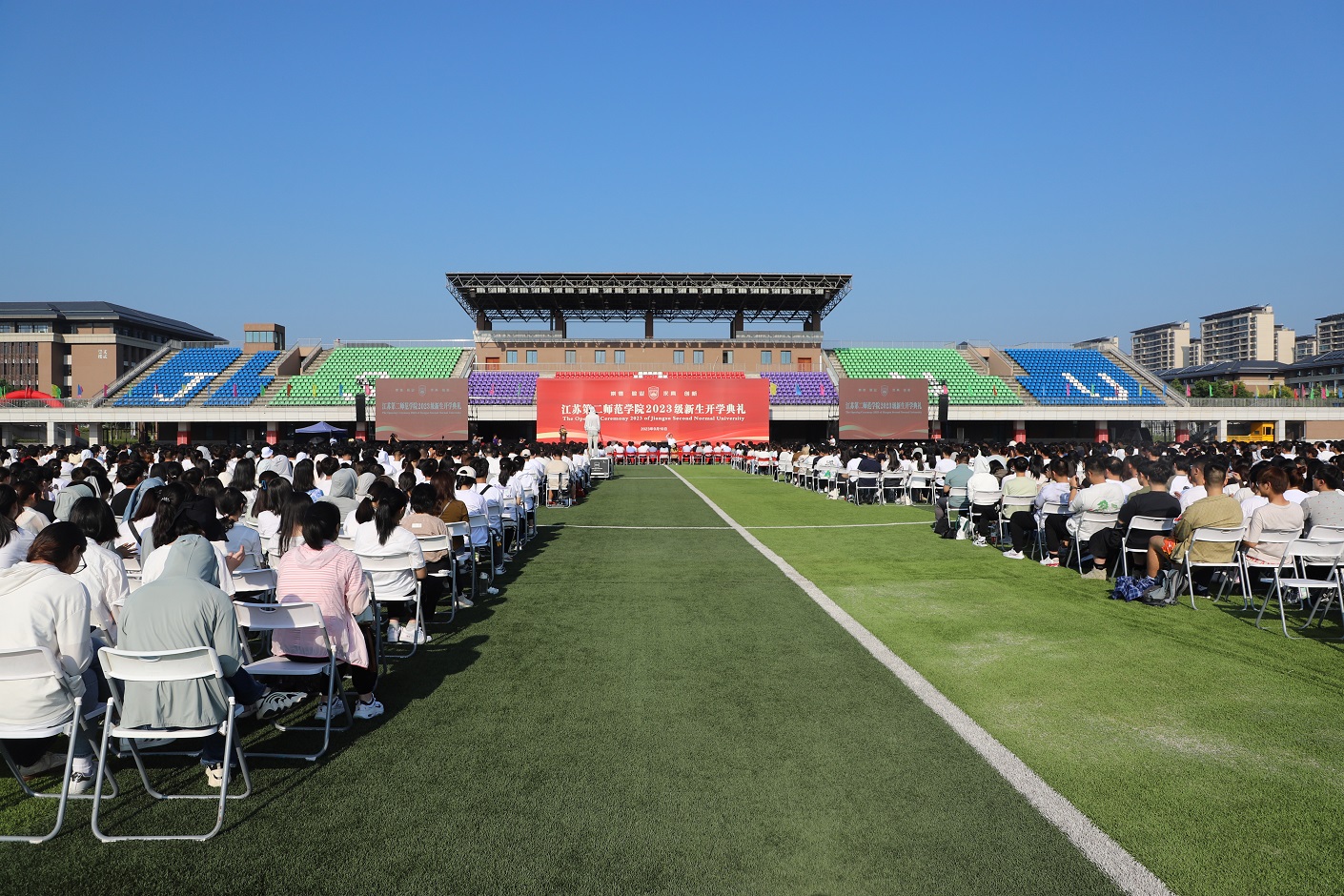 2023级数学与应用数学(师范定向)普本班吴怡涵、2023级生物制药专转本班付思文两位同学作为新生代表发言。他们表示,作为新的江苏二师人,要牢记嘱托,把个人理想同祖国前途和民族命运紧密联系,勤学善思、开拓创新,用奋斗擦亮青春最亮丽的底色。